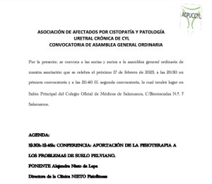 Conferencias organizadas por la Asociación de Afectados por Cistopatía y Patología Uretral Crónica de Castilla y León